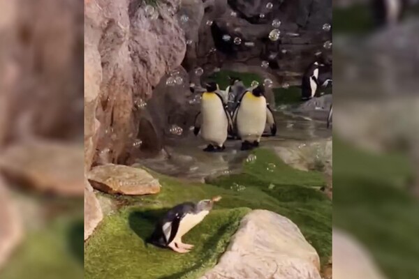 «Годовалый хохлатый пингвин Буми был в восторге от игры с пузырями!.. Вот на такую ​​вечеринку мы бы тоже хотели попасть!» — говорится в подписи к ролику.