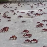 Миллионы крабов заполонили автодороги острова, чтобы добраться из леса до океана. Там самки и самцы будут спариваться, после чего отложат яйца. Из них появятся личинки, которые через месяц превратятся в молодых крабов и начнут мигрировать обратно в лес, сообщает телеканал.