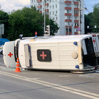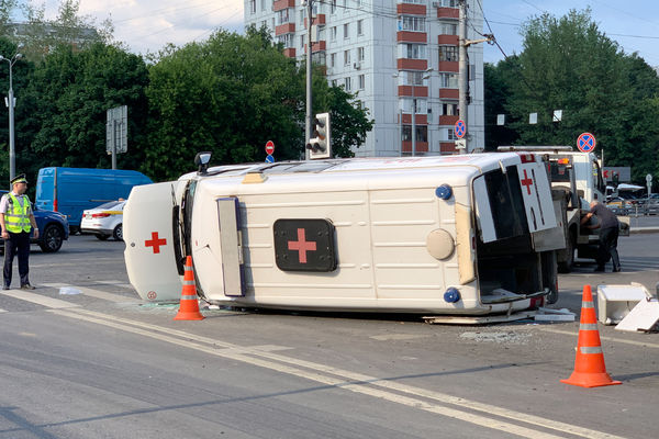 Ранее в Москве грузовик влетел в машину скорой помощи.