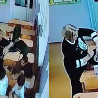 Доказательством их слов стали записи с камеры видеонаблюдения. На кадрах действительно видно, как женщина подходит к одному из школьников и заклеивает ему рот клейкой лентой.