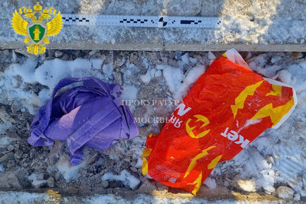 Московская прокуратура опубликовала в Telegram-канале фото сиреневого рюкзака и красного пакета, в котором нашли голову убитого ребенка.