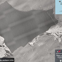 Российский радиолокационный спутник «Кондор-ФКА» сделал снимок расколовшегося айсберга, который сейчас дрейфует в Атлантическом океане. Фотографию опубликовали в Telegram-канале «Роскосмоса».