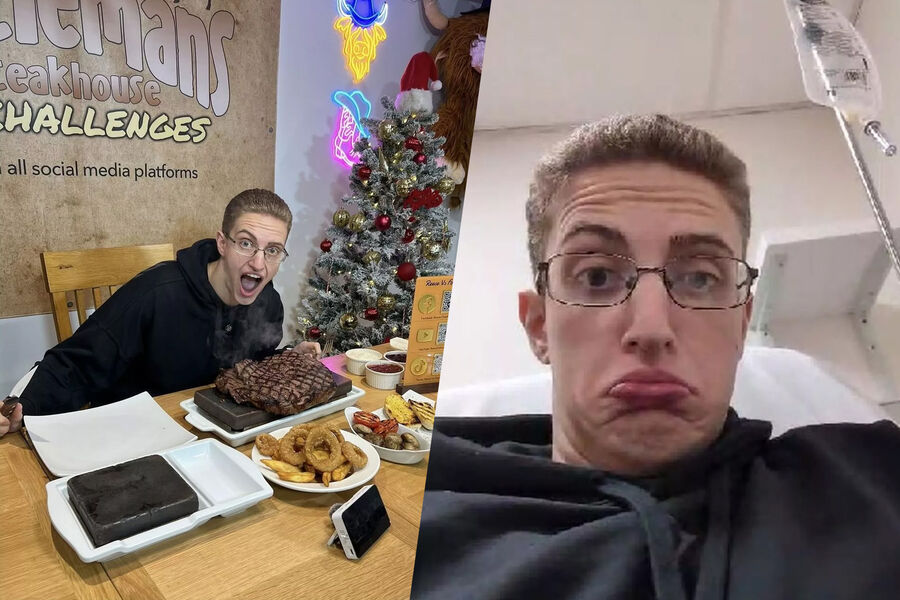 Молодой человек за 36 минут съел порцию из двухкилограммового стейка, картофеля фри и луковых колец в одном из ресторанов. Несмотря на недомогание на следующее утро, вечером он принял участие в новом челлендже, съев по 2,5кг рыбы с картошкой.