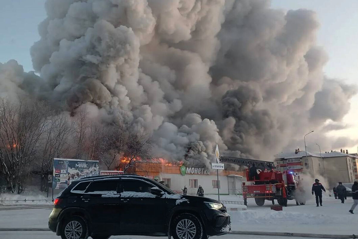 МЧС: пожар охватил здание магазина на 500 квадратных метрах в Уренгое