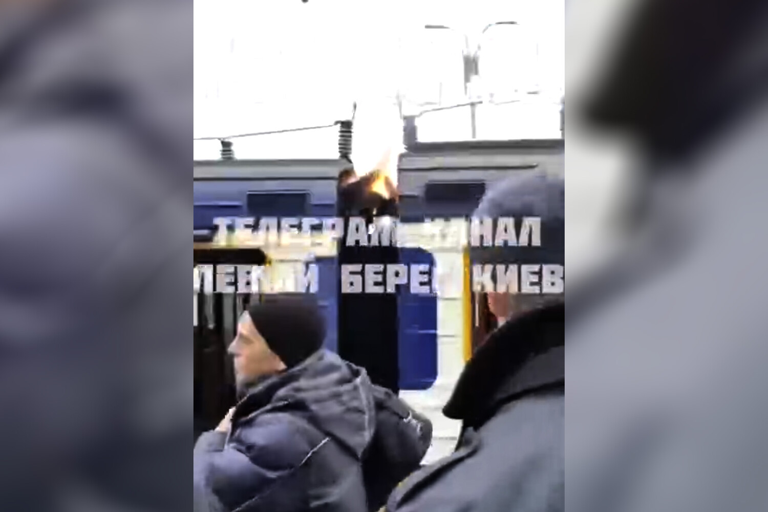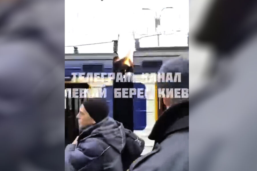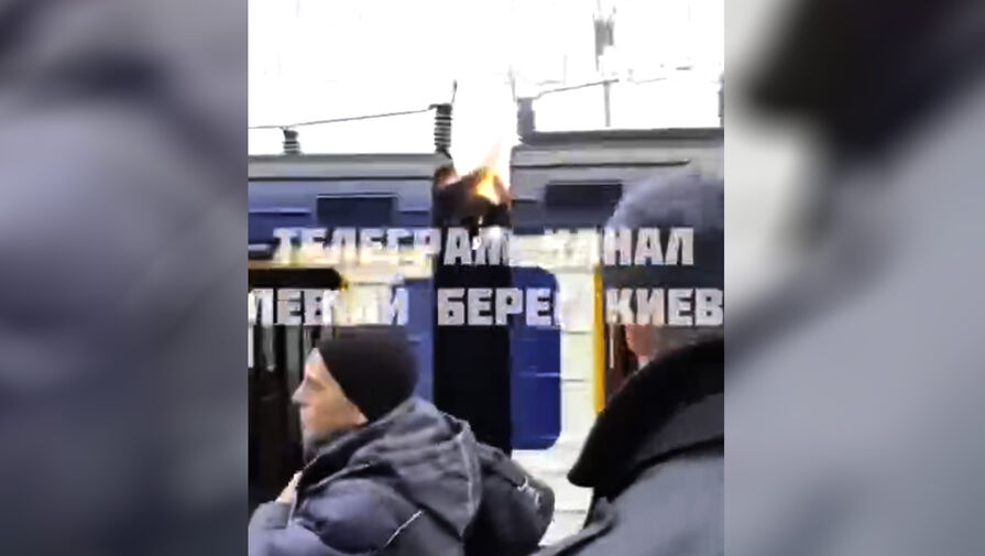 На крыше пригородного поезда на станции «Выдубичи» на Украине обнаружили горящего человека. Об этом сообщает Telegram-канал «Левый берег Киева».