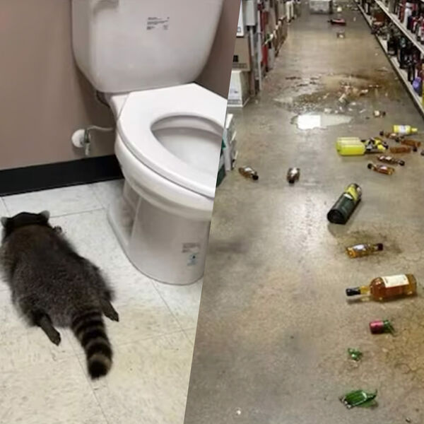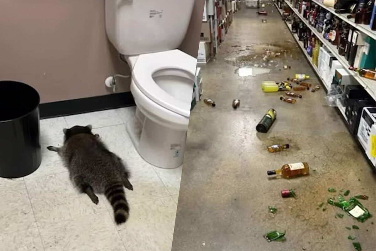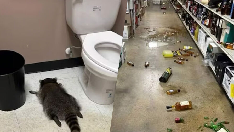 Ранее енот разгромил алкомаркет, выпил и уснул в туалете.