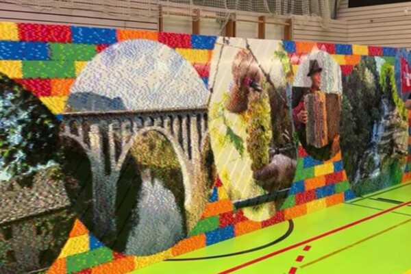 Полотно длиной почти 24 метра и высотой более двух метров изображает знаменитые места региона Северный Во. Проект разработала компания Brickmaster.ch, которая специализируется на масштабных Lego-мероприятиях. Фреска стала частью телемарафона, целью которого был сбор средств для людей с редкими генетическими заболеваниями.