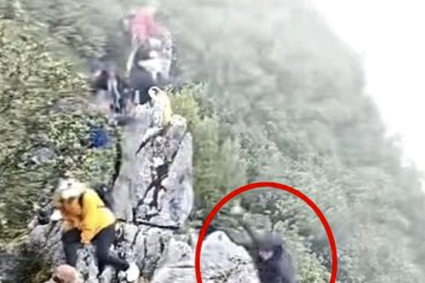 ЧП произошло в популярном туристическом месте — на горе Хуайин в китайской провинции Сычуань. Очевидцы засняли момент падения мужчины на видео.