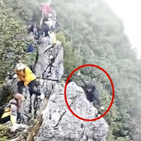Турист сорвался с 40-метровой скалы в Китае и чудом выжил