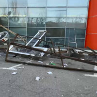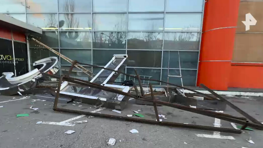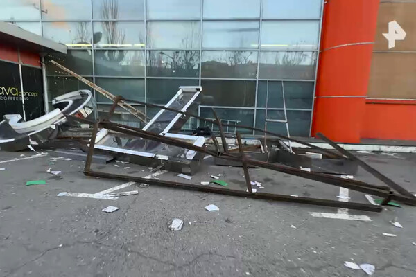 Инцидент произошел в темное время суток. Огромная рекламная конструкция, которая находилась на крыше торгового центра на высоте около 20 метров, упала вниз — ее сорвало с места порывом ветра.