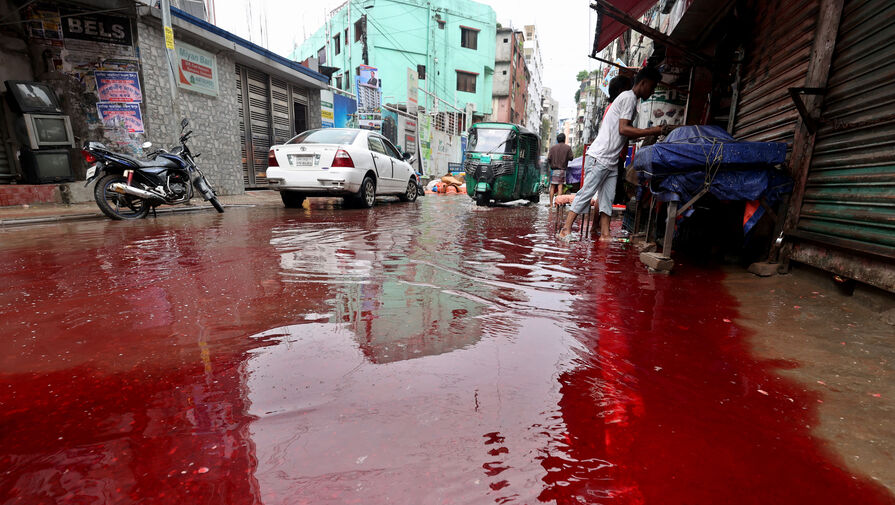 Пляж на иранском острове Ормуз и море вблизи него окрасились в насыщенный красный цвет. Об этом сообщает телеканал France24.
