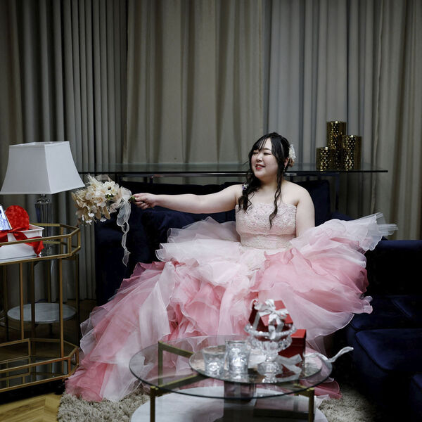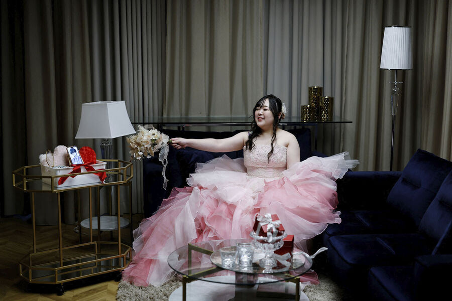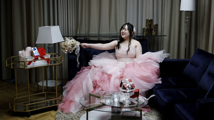 Свадьба между 32-летней Юриной Ногучи и ее женихом Клаусом состоялась еще 27 октября в свадебном зале Магритта в Окаяма. Женщина пришла на церемонию в бальном платье и с букетом розовых роз, а ее возлюбленный появился на экране телефона.