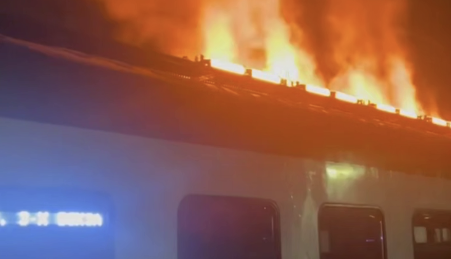 В Подмосковье произошел пожар в электричке, направлявшейся в сторону Москвы. Кадры с горящим вагоном опубликовал Telegram-канал «112».
