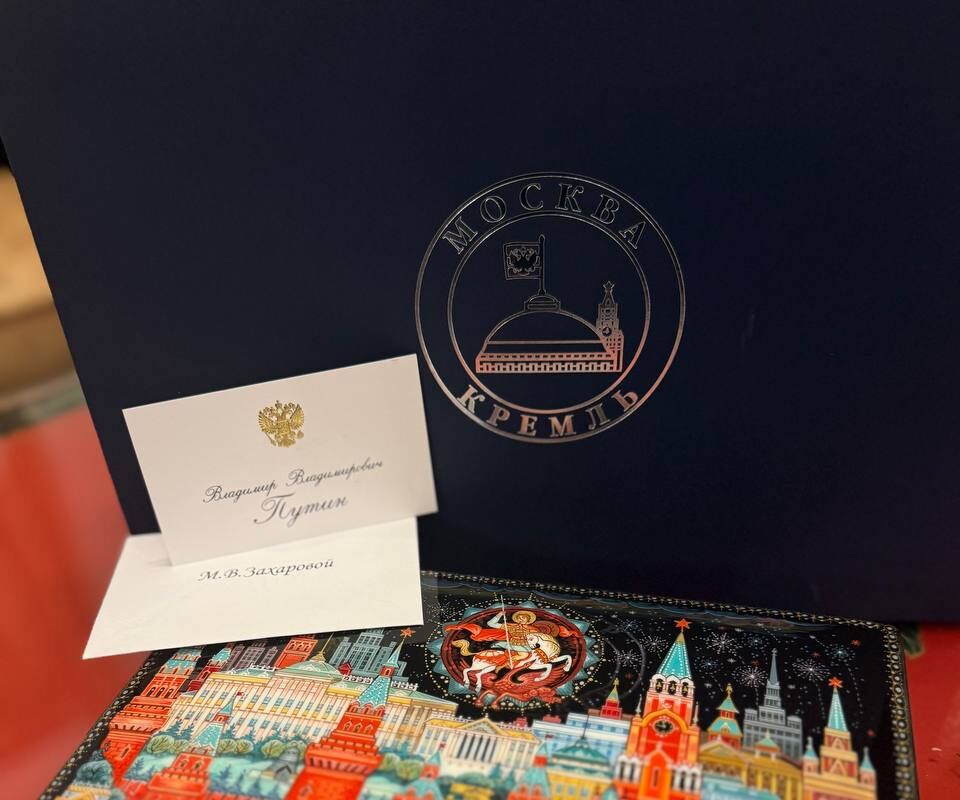 Накануне сообщалось, что Путин вручил официальному представителю МИД РФ подарок во время неформального общения в Кремле за бокалом шампанского. Позже дипломат показал подарок президента журналистам, назвав его невероятным.