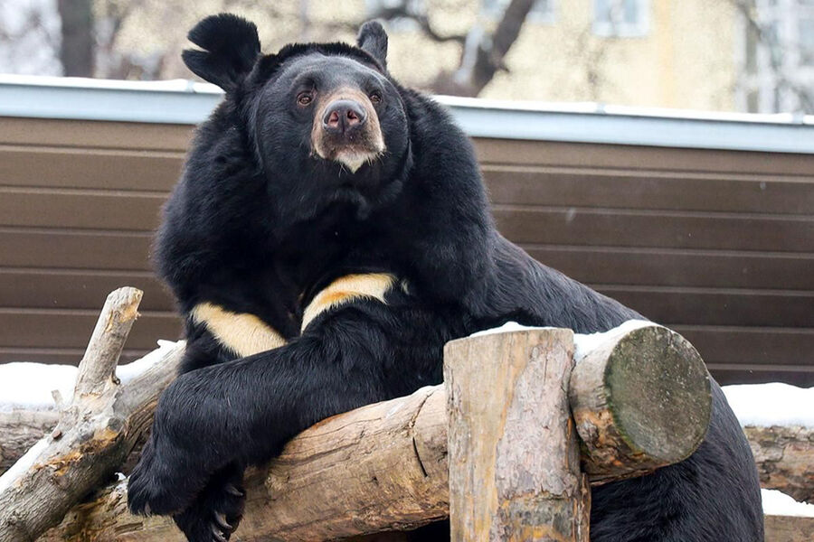 Гималайский медведь Вася первый раз впал в спячку в Московском зоопарке