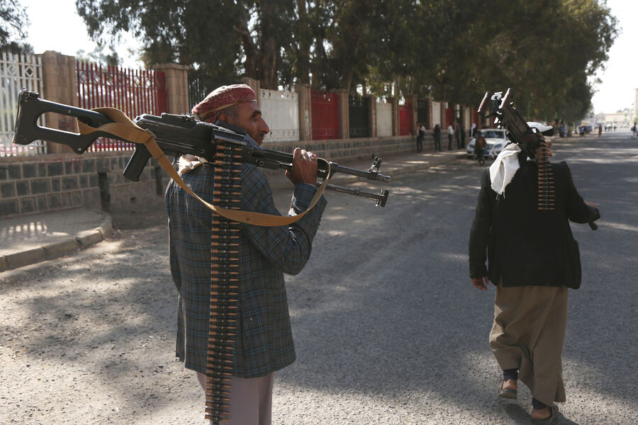 На кадрах запечатлена группа людей в масках с огнестрельным оружием в руках.