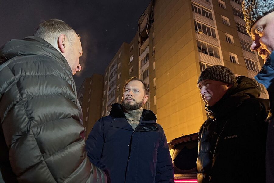Очевидцы утверждают, что слышали около пяти взрывов в небе, после чего БПЛА врезался в девятиэтажку, нанеся удар по верхним этажам. Инцидент спровоцировал пожар, а обломки беспилотника оказались разбросаны по придомовой территории.