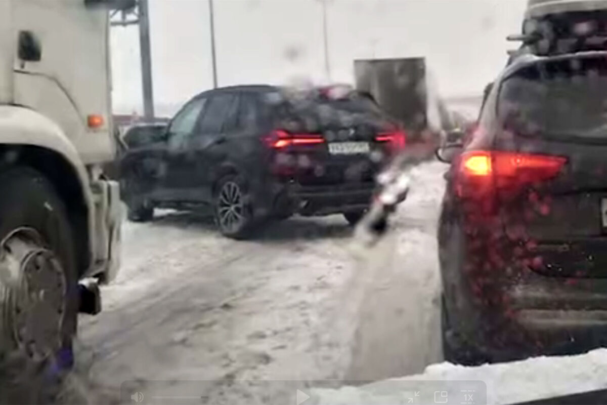 По словам очевидцев, авария произошла на 385-м километре трассы. Фура перекрыла проезжую часть, что привело к формированию 20-километровой пробки.