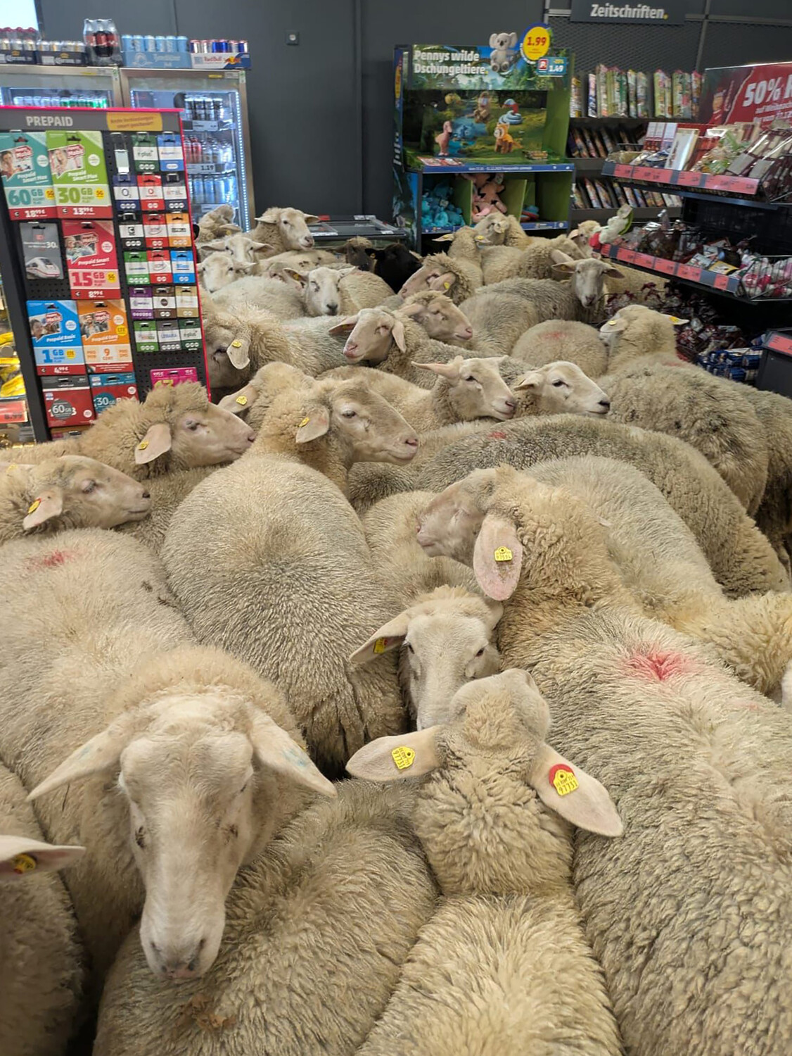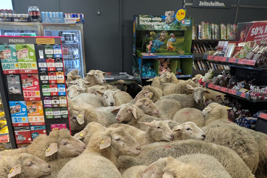 Инцидент произошел 5 января в баварской общине Бургзинн. Около 50 овец и ягнят отстали от основного стада во время перегонки и забежали в открытый супермаркет. Очевидцы сняли на видео, как животные перемещаются по магазину. Вывести их обратно на улицу удалось примерно через 20 минут.