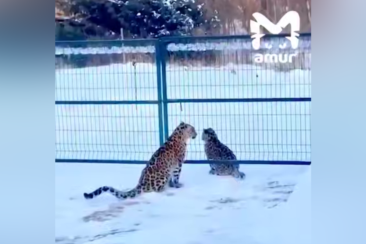 Житель Приморского края встретил во дворе двух редких дальневосточных леопардов. Видео опубликовал Amur Mash.