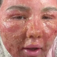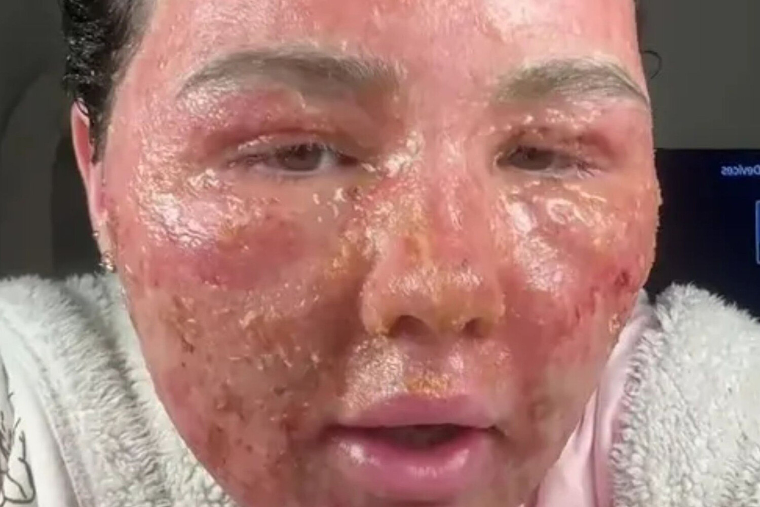 Женщина поделилась фотографиями, продемонстрировав сильный отек лица, из-за которого она с трудом открывает глаза. Кожа британки покрыта коркой и выделяет жидкость, однако, по ее словам, это нормальный, но тяжелый этап восстановления после агрессивного лазерного воздействия.