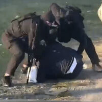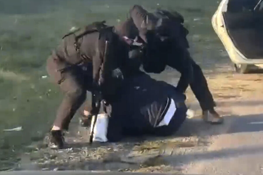 На кадрах видно, как сотрудники спецслужб арестовывают подростка, который идет вдоль дороги, позднее правоохранители доставили юношу на допрос.