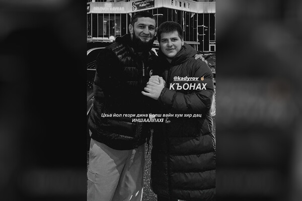 На фоне слухов о ДТП представляющий ОАЭ боец смешанных единоборств, российский чемпион UFC (Абсолютного бойцовского чемпионата) чеченского происхождения Хамзат Чимаев опубликовал в сторис Instagram (владелец компания Meta признана в России экстремистской и запрещена) черно-белую фотографию с сыном и помощником главы Чечни, секретарем безопасности республики Адамом Кадыровым.