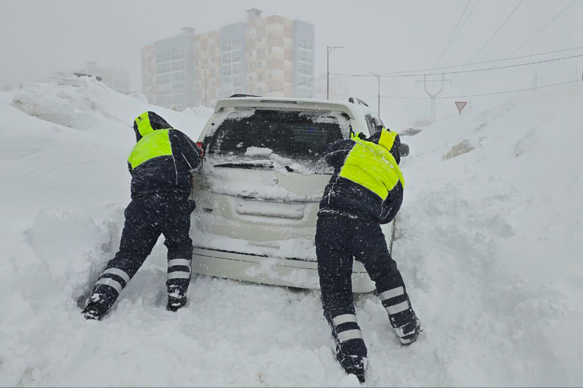 На Камчатке уже несколько дней продолжается мощный снегопад. Из-за циклонов в Петропавловске-Камчатском намело многометровые сугробы.