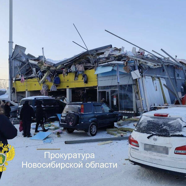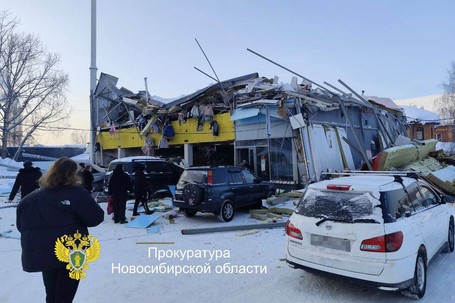 В Новосибирске на видео попал момент обрушения крыши ТЦ из-за снега