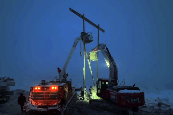 «Работа по доставке опор – настоящее испытание. Детали везут на вездеходах по частям, несмотря на шквалистый ветер и метель. Застрявшую технику приходится откапывать экскаваторами, но из-за сложного рельефа они нередко застревают», — написал он.