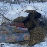 В пресс-службе регионального Минприроды изданию сказали, что на месте находится егерь, «который с местными жителями и вытащил лося из полыньи», а сейчас там работают ветеринары и охотоинспектор.