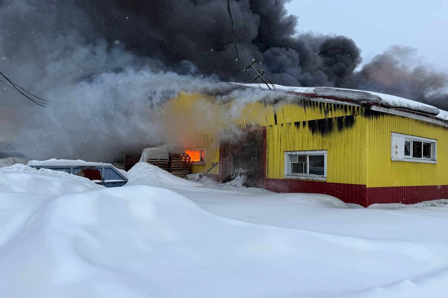 «Установлено сильное задымление внутри складского одноэтажного блочного помещения Т-образной формы, высотой пять метров и площадью более 3,7 тыс. квадратных метров», — говорится в заявлении.
