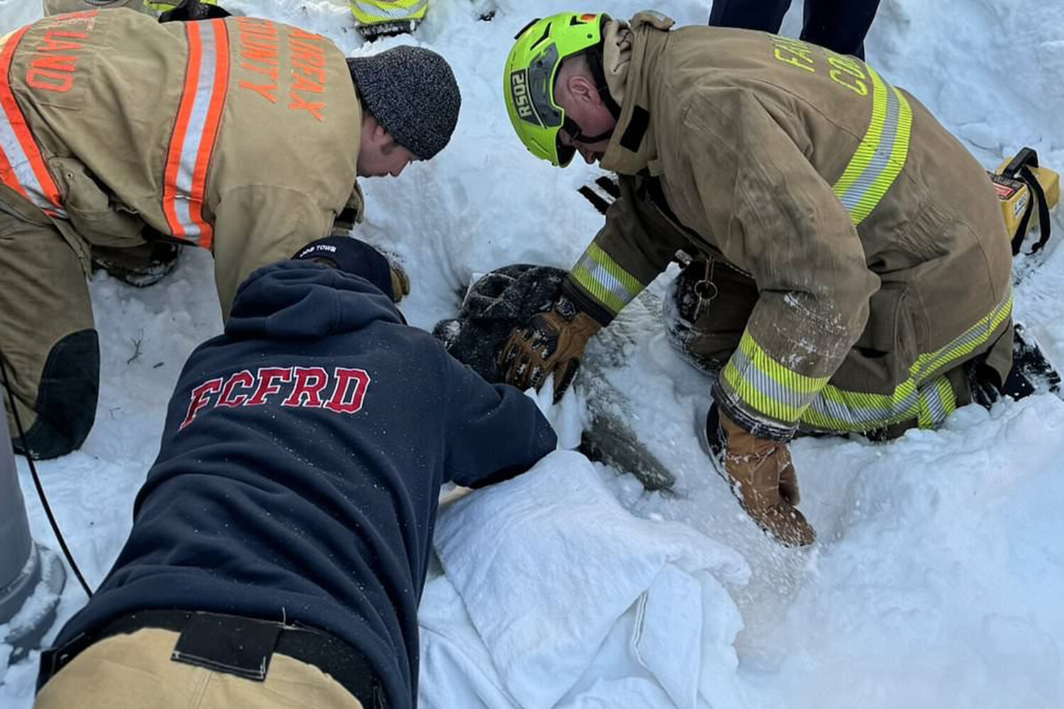 По данным пожарно-спасательной службы округа, ребенок играл на улице и не заметил слив, скрытый под слоем снега, в результате чего упал внутрь и оказался заблокирован в трубе, напоминающей туннель.