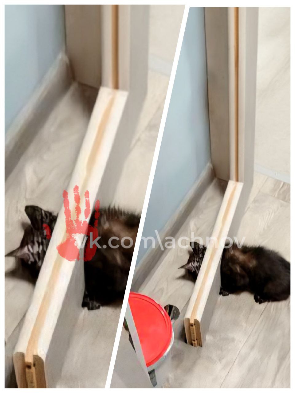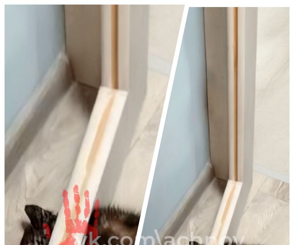 Для освобождения питомца прибывшим на место спасателям пришлось разобрать дверь и распилить ножовкой по дереву ту ее часть, в которой застрял котенок. В результате питомца удалось освободить.