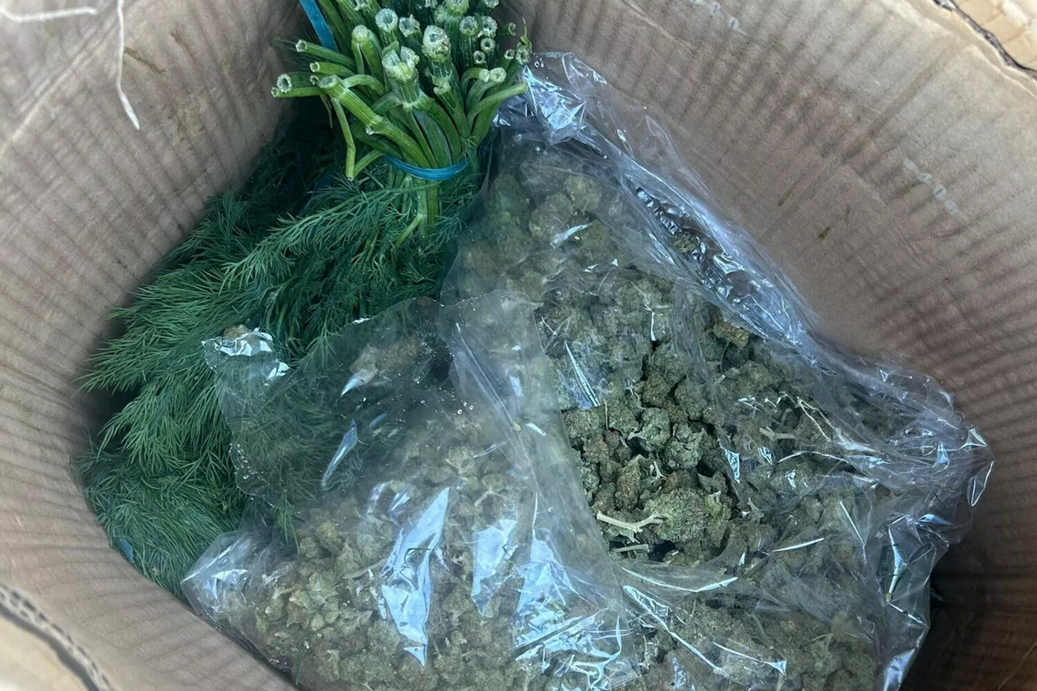 В нем отмечается, что во время досмотра сотрудником управления партии импортного укропа, ввезенного автомобильным транспортом, были обнаружены пакеты с растительным веществом, имеющим сходство с марихуаной. Они были спрятаны на дне коробок с укропом.