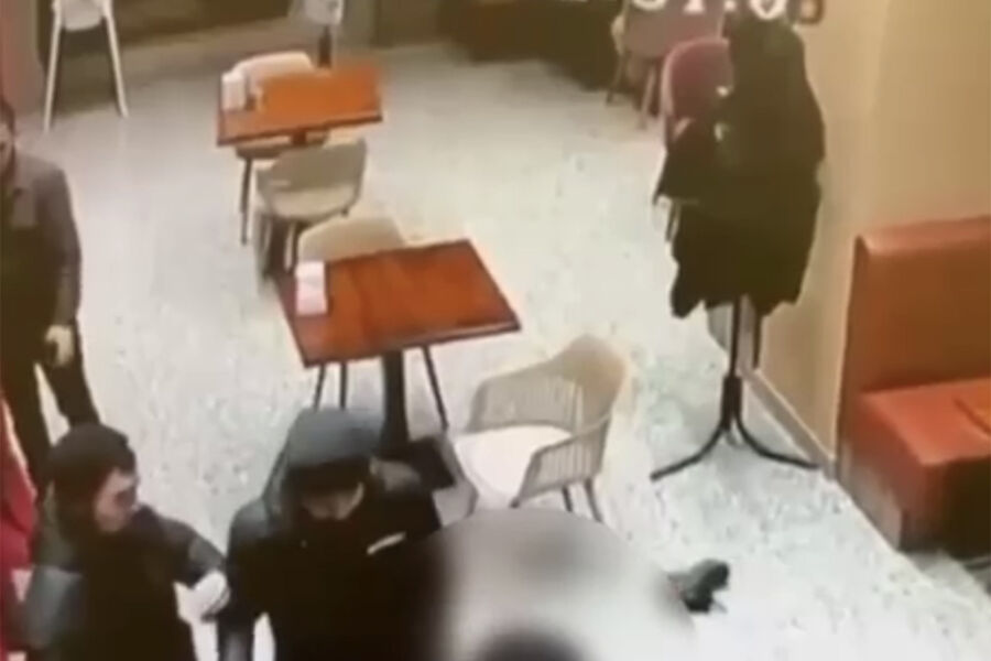 Затем на девушку напали трое мужчин, включая владельца заведения. На кадрах видно, как нападавший наносит потерпевшей удар, из-за чего та падает на пол.