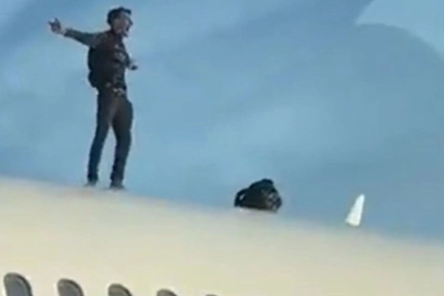 Затем дебошир достал из рюкзака банку с каким-то напитком, сделал глоток и бросил ее вниз. Далее он дважды пробежал по фюзеляжу туда и обратно, продолжая дразнить работников аэропорта.