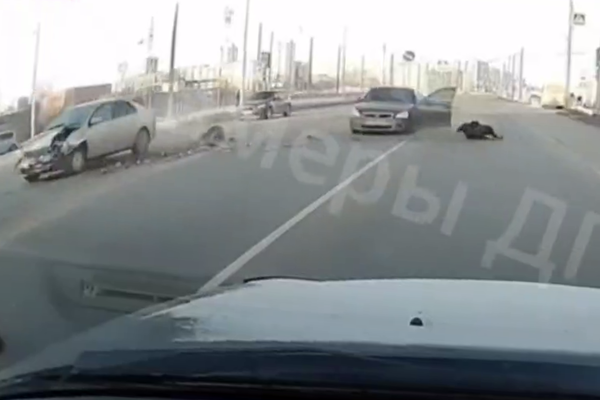 Столкновение произошло утром 2 февраля на перекрестке улиц Взлетная и Крупская. На видеозаписи видно, что после столкновения автомобиль развернуло, передняя дверь распахнулась, а из нее вылетел мужчина. При этом, оказавшись на обочине, он сразу поднялся на ноги.