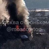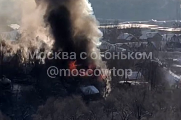 По предварительным данным, огонь охватил частный дом. На кадрах видно, как над горящим зданием поднимается высокий столб густого черного дыма, заметный издалека.