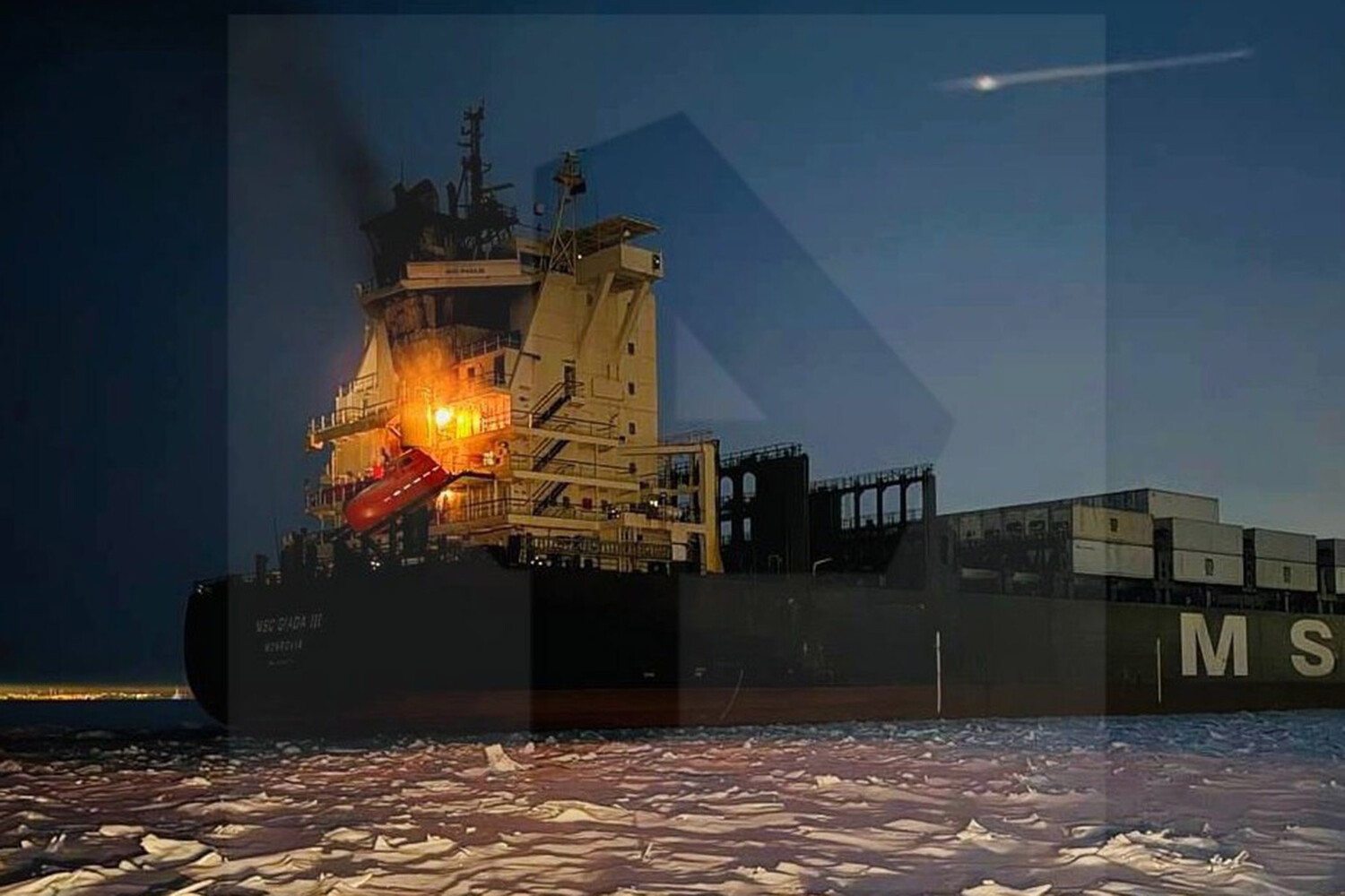 По предварительной информации, на судне находятся 22 человека. Возгоранию предшествовал хлопок в машинном отделении. Открытое горение произошло у надстройки контейнеровоза.