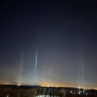 В Москве и области в ночь на 5 февраля заметили необычное природное явление — световые столбы. Фото опубликовал Telegram-канал «КудаМосква».