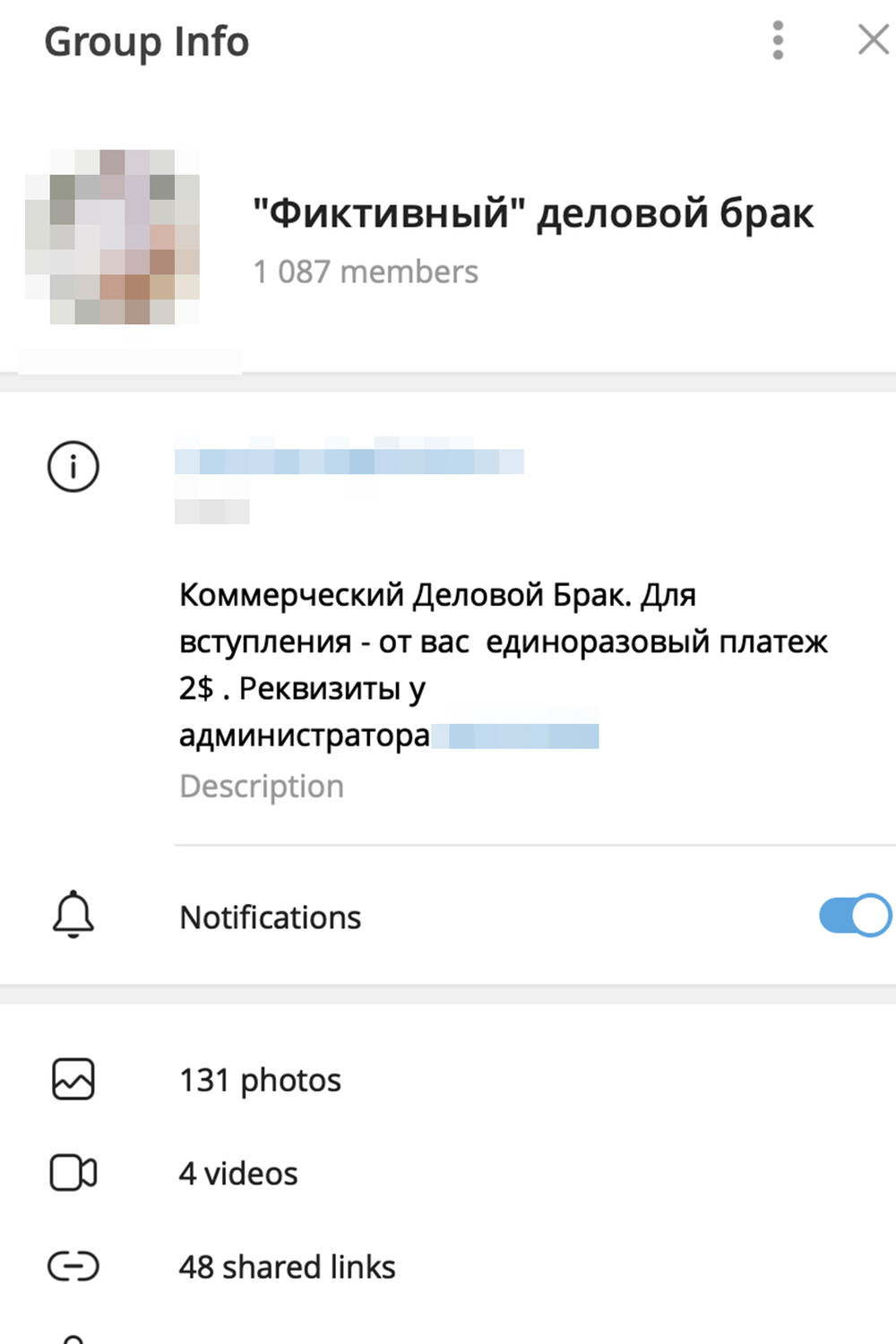 По информации журналистов, на этих же площадках иностранцам предлагали услуги по заключению брака с гражданами РФ для получения российского паспорта по упрощенной процедуре.