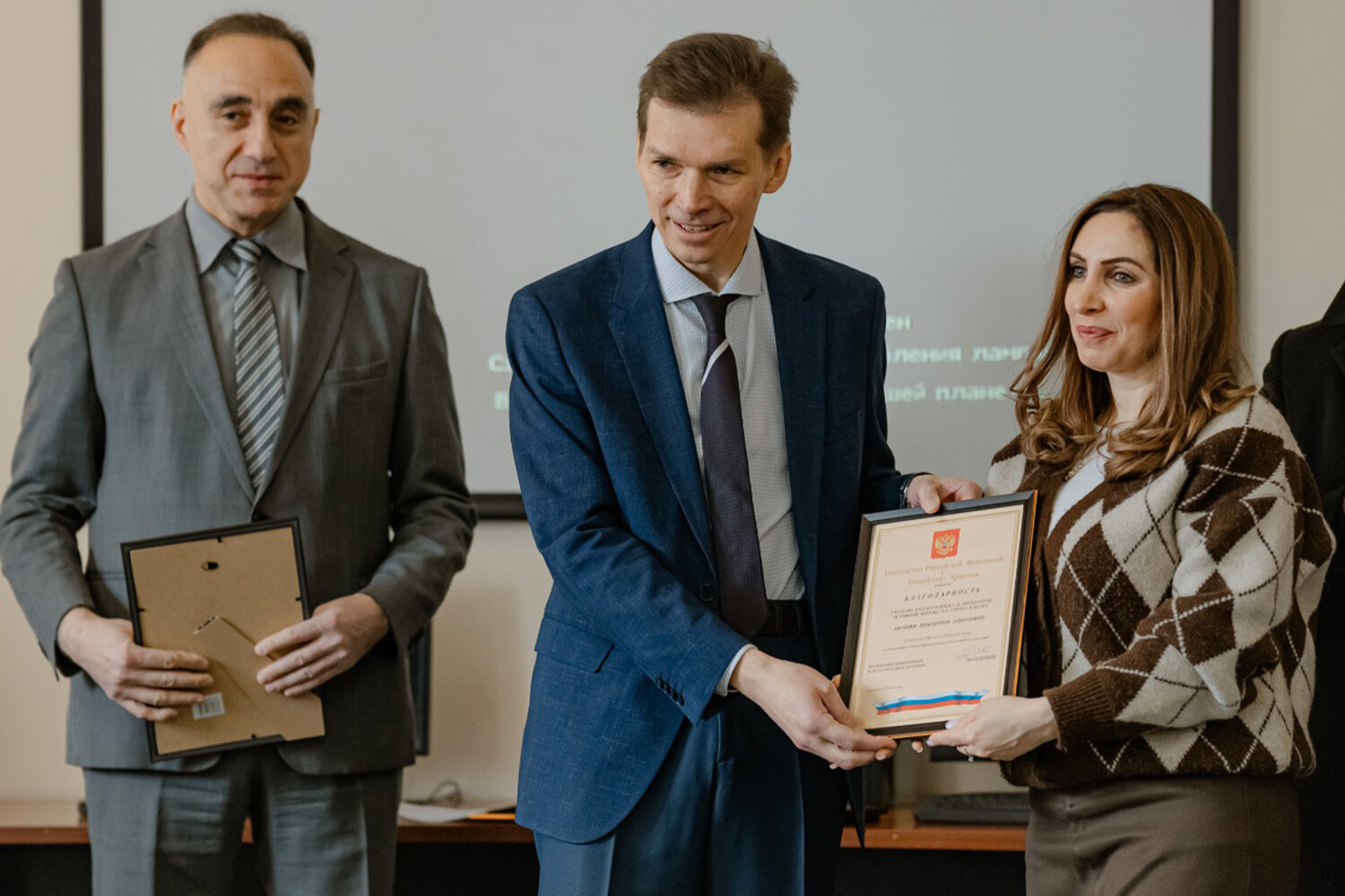 Советник посольства Михаил Вождаев приветствовал участников от имени Посла РФ в Армении Сергея Копыркина. Он подчеркнул ключевую роль учителей-русистов в укреплении гуманитарных связей между странами и вручил дипломы с благодарностью от посольства РФ.