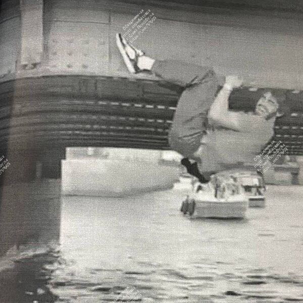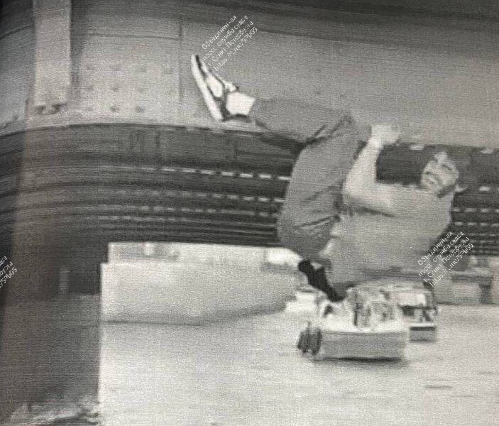 Мужчина висел там около минуты, мешая проходу других судов и создавая угрозу для пассажиров, а затем вернулся на борт, но продолжил нарушать общественный порядок.