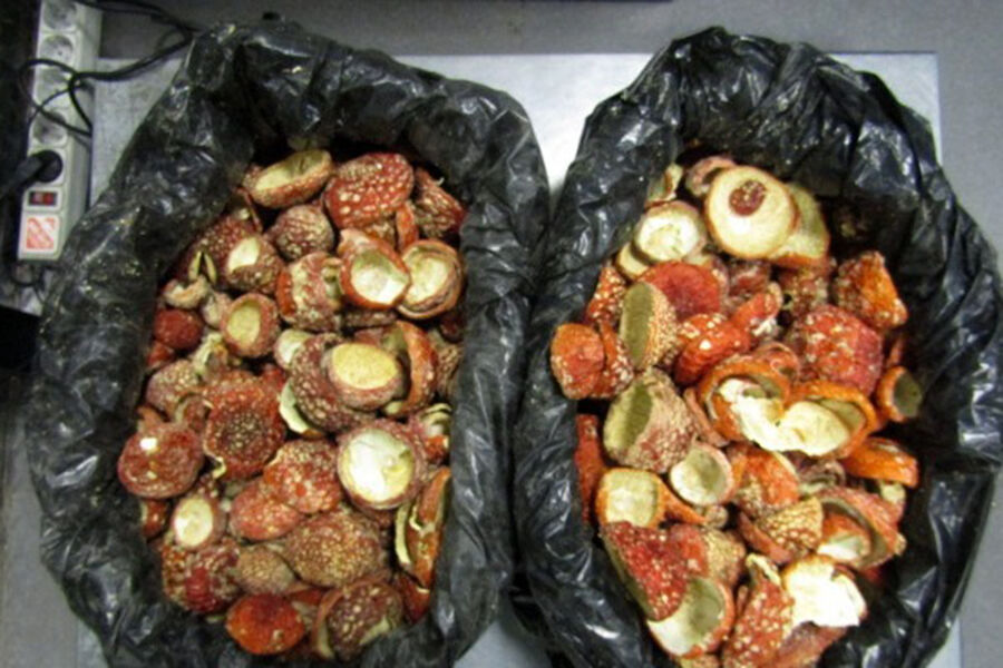 В их багаже обнаружили и изъяли полиэтиленовые пакеты с грибами. Экспертиза подтвердила, что исследуемые образцы являются «шляпками высушенных плодовых тел мухомора красного».