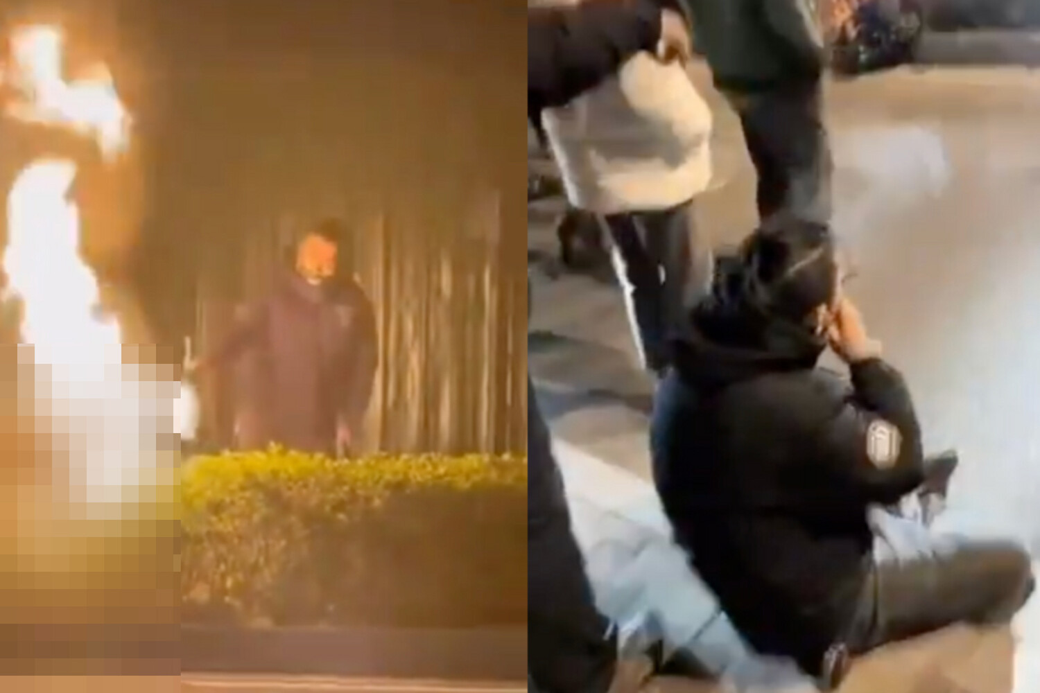После этого китаец приобрел в интернете комплектующие и собрал огнемет. Очевидцы утверждают, что во время нападения жертва пыталась просить о пощаде и предлагала денежную компенсацию, однако нападавший продолжал поджог. На опубликованных кадрах также видно, как после инцидента напавший спокойно сидит на тротуаре и курит сигарету до прибытия полиции.