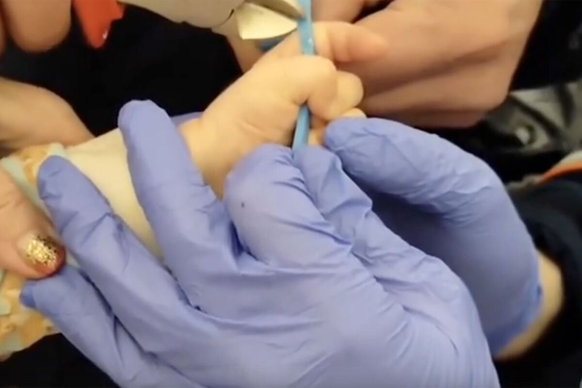 Ребенок, родившийся в 2025 году, попал в переделку — его палец оказался зажат в пластиковой ложечке. На помощь младенцу вызвали спасателей.