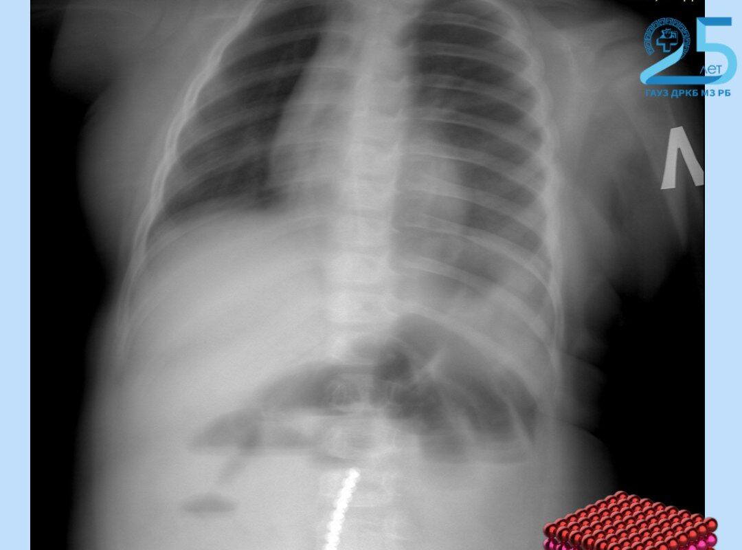 Маленький пациент поступил в больницу с приступами рвоты в тяжелом состоянии. Рентген показал множество инородных тел в желудочно-кишечном тракте. Выяснилось, что несовершеннолетний наглотался магнитных шариков от игрушки.