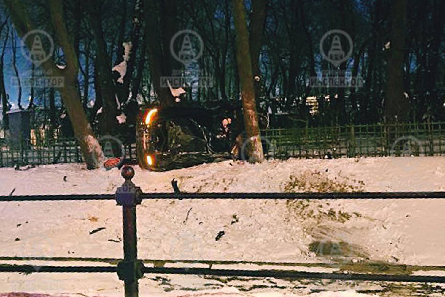 Во время поездки молодых людей по городу дорожные полицейские пытались остановить иномарку на набережной канала Грибоедова, но водитель проигнорировал требование и попытался скрыться. Во время погони юноша не справился с управлением и въехал в ограду Летнего сада — автомобиль перевернулся.