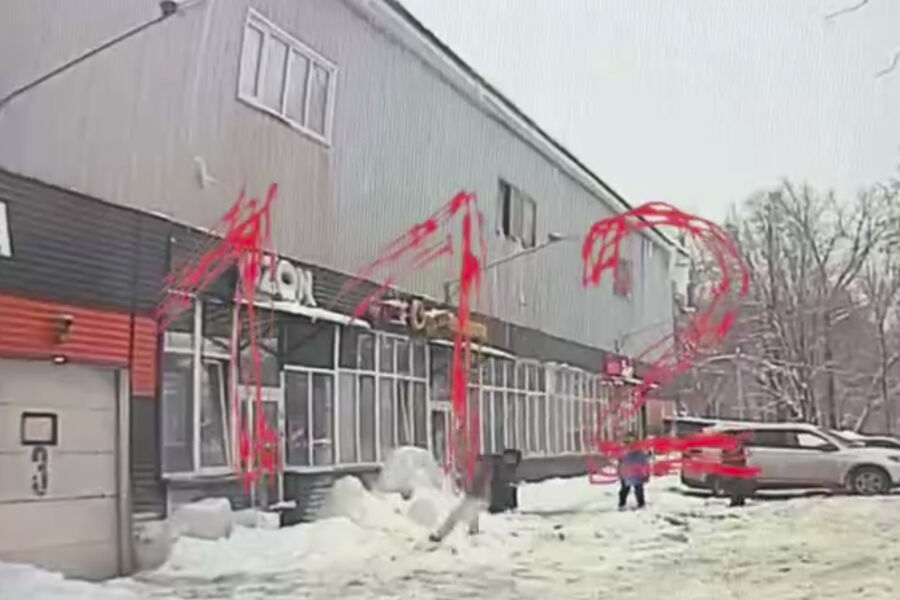 Инцидент произошел 14 февраля. На видео видно, как наледь откалывается от крыши здания, отскакивает от окна и летит в сторону прохожей.